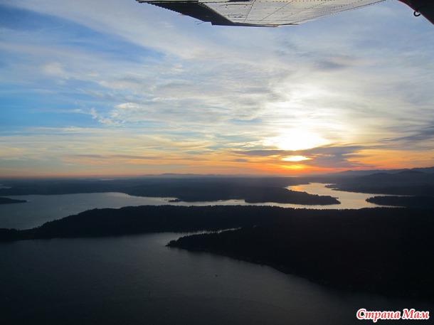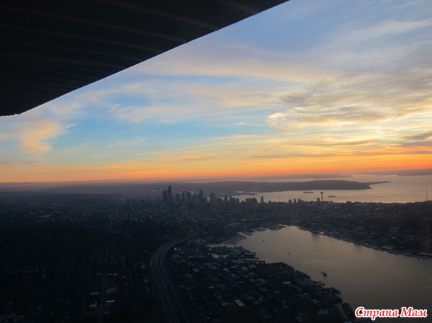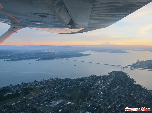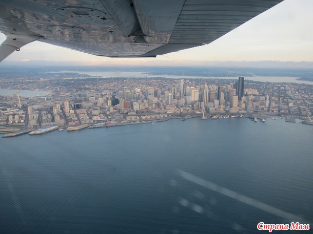 В 2:30 дня мы с мужем поехали в Сиэтл на один из аэропортов, потому что у нас был заказан полет над Сиэтлом на 4-местном самолете с пробным уроком.