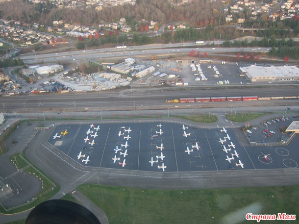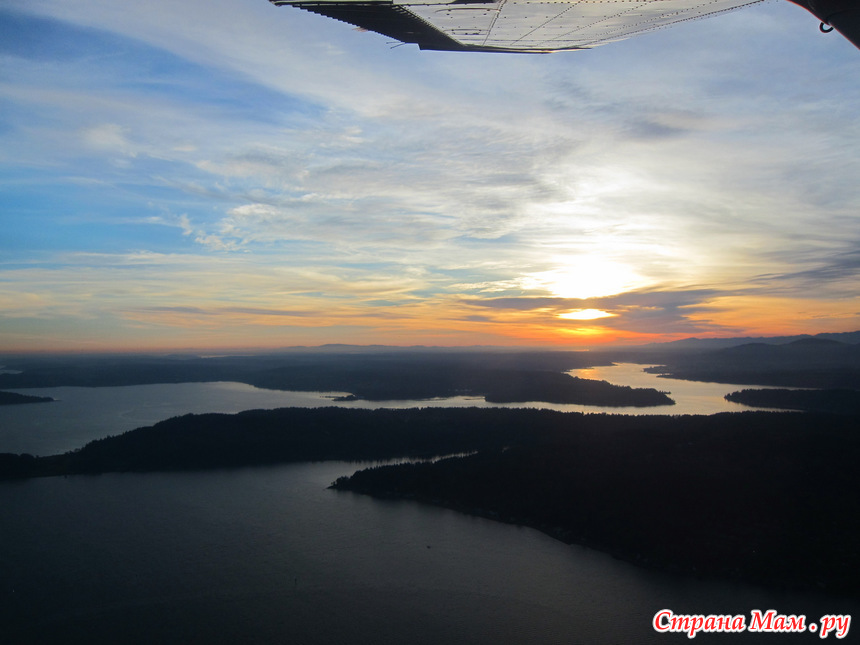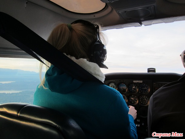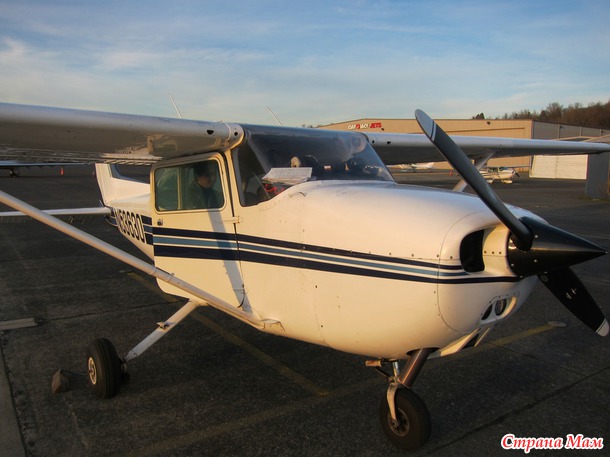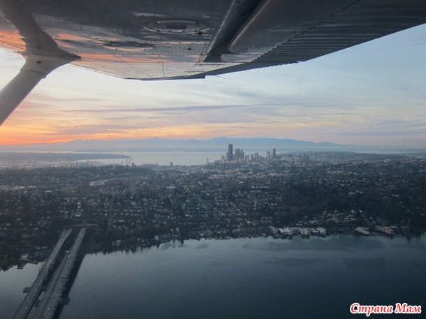 В 2:30 дня мы с мужем поехали в Сиэтл на один из аэропортов, потому что у нас был заказан полет над Сиэтлом на 4-местном самолете с пробным уроком.