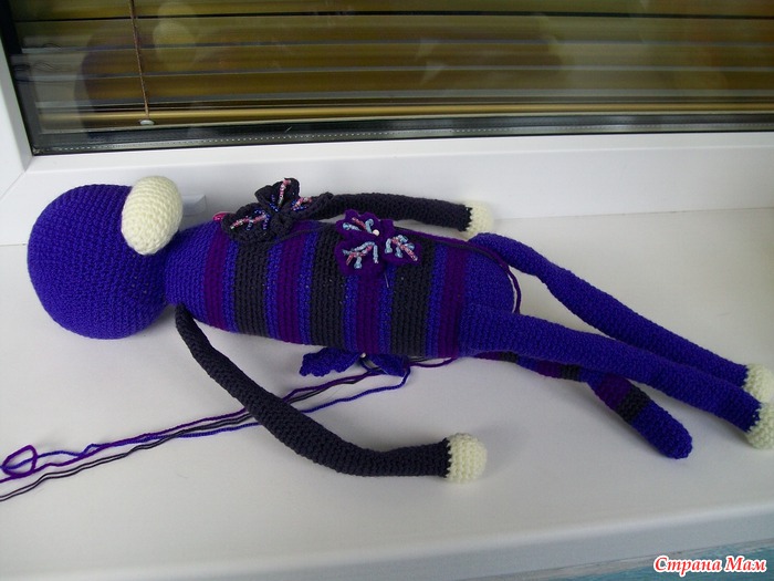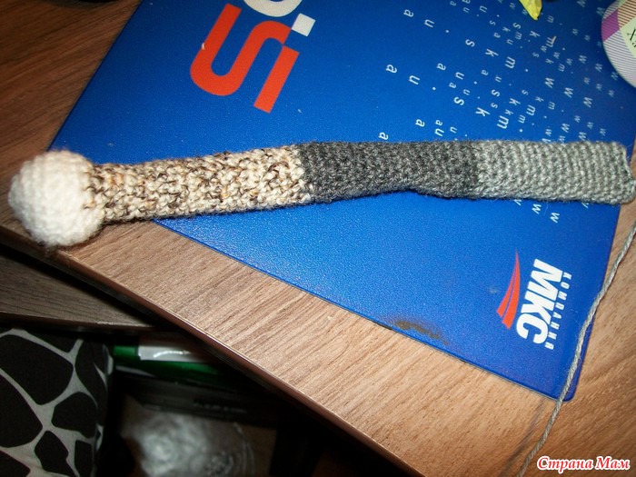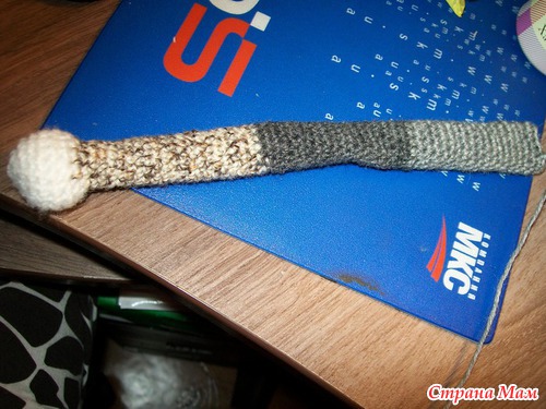 Вяжем до необходимой длины, прикладываю голову для ориентира...