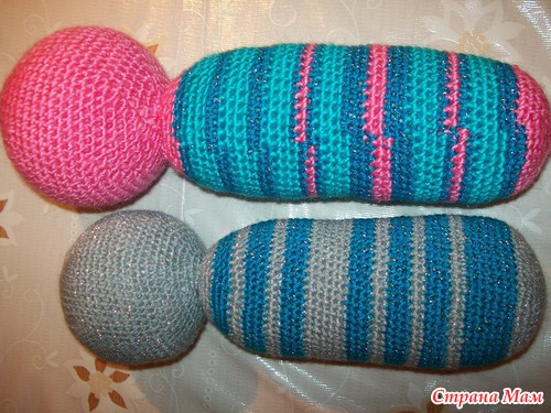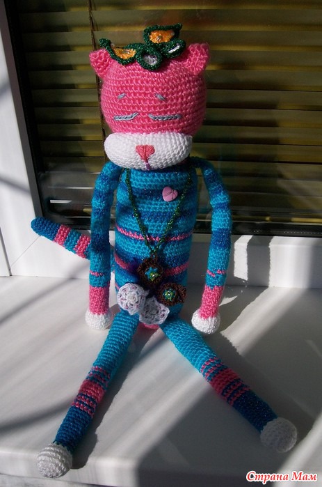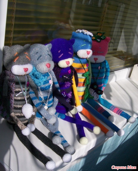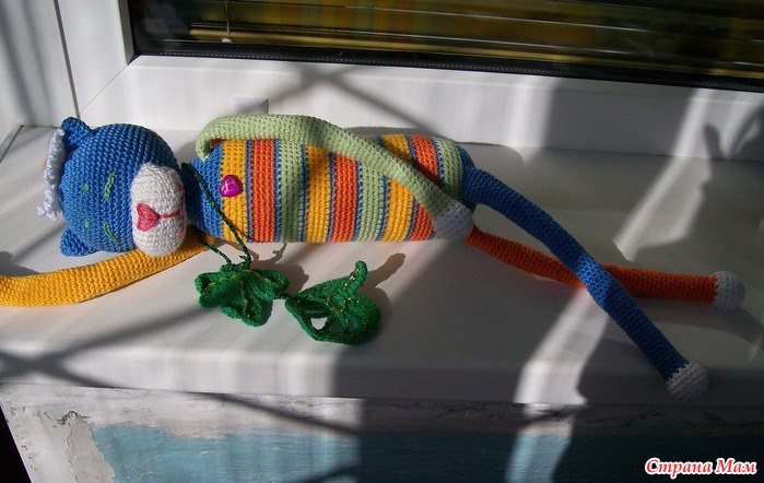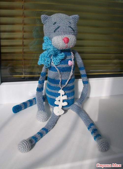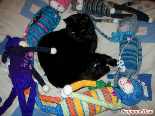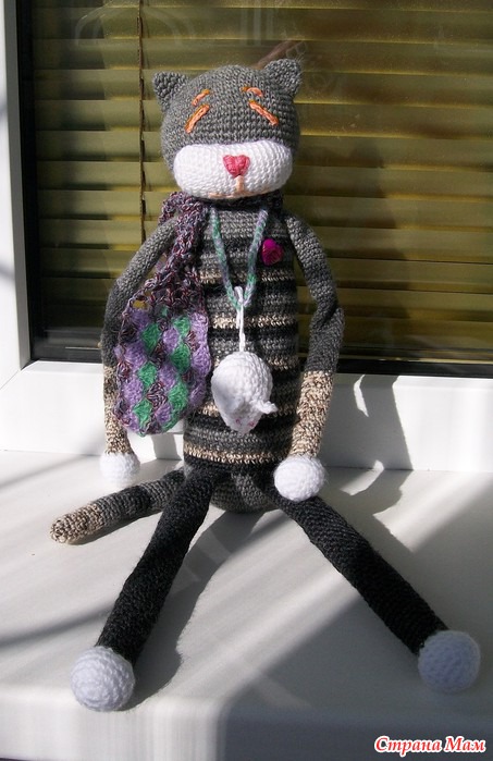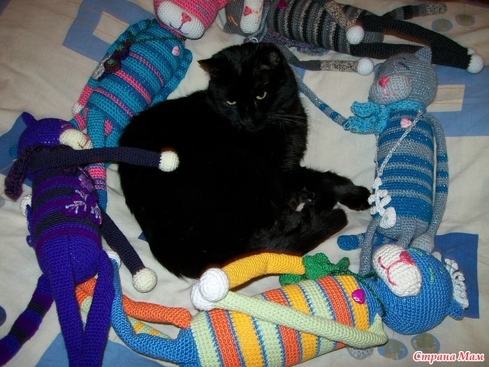 шиваем голову с телом...Причем чем толще пряжа -тем больше ваш котяра будет по размеру...