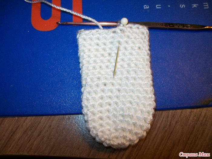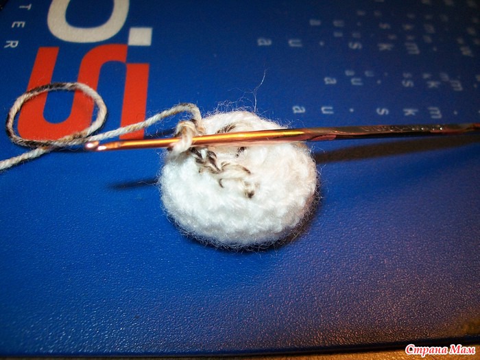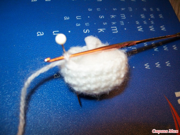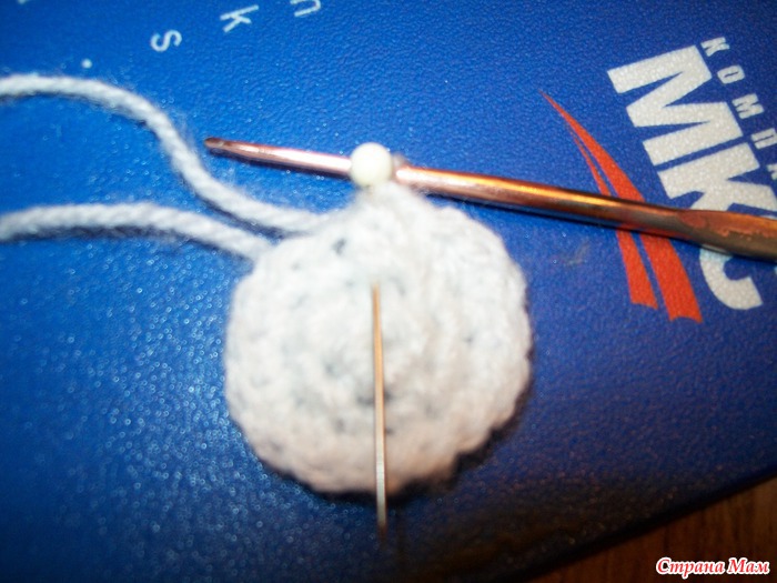 Вяжем по кругу, не соединяя ряды соединит. петлей!!!! просто по кругу, чтоб не запутаться в рядах, берем обычную булавку с головкой и втыкаем ее в последнюю по счету петлю ряда...так у вас будет ориентир по рядам. В скобках указано количество СБН всего в ряду.
