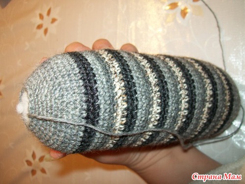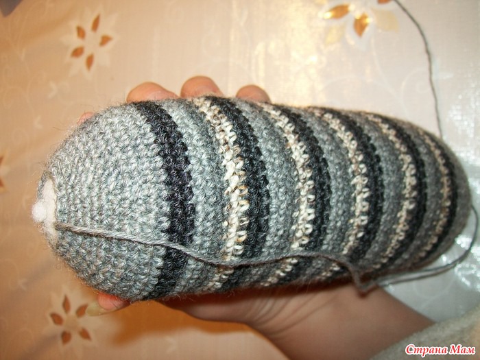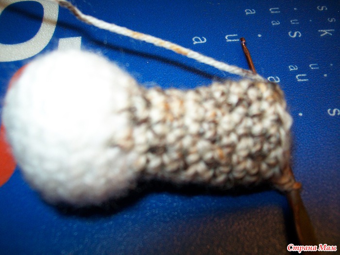 3-5 ряд - 1 СБН в каждую петлю. перед убавлением петель вкладываем синтепон в лапку.