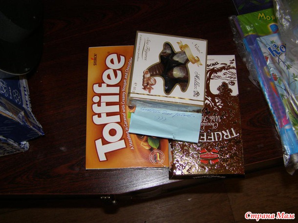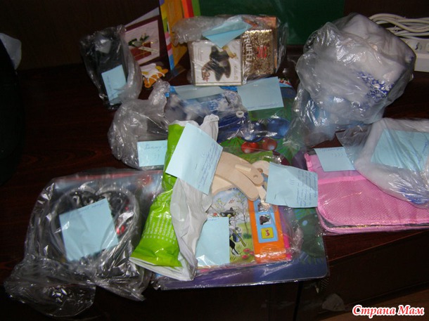 общий вид подарочков (все очень заботливо упаковано по пакетикам и подписано