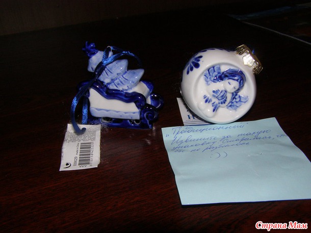 пятый этап- традиционный две статуэтоки-подвески гжель (в шарик с ангелочком я просто влюбилась