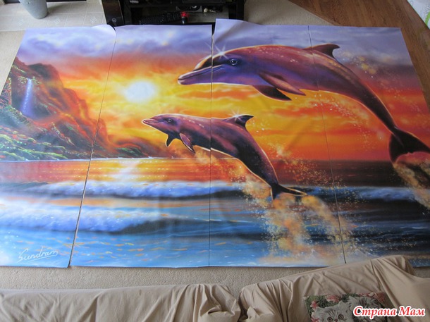 В общем такие размеры получались на 1.350 примерно, но я заказывала в акцию с 30% скидкой, так что у нас вышло 940 дол. за сами картинки и еще 60 дол. за клей и инструменты, итого 1.000 баксов. Но я очень довольна!!!