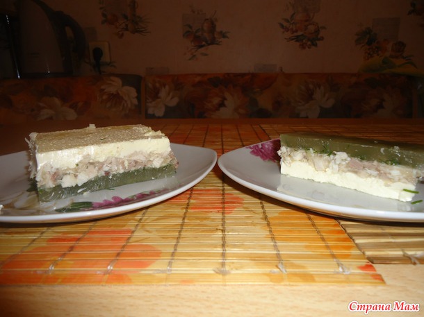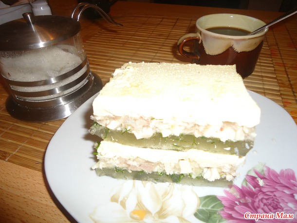 Однажды попался мне пост в СМ "Слоёное куриное заливное" вот он https://www.stranamam.ru/post/6728954/