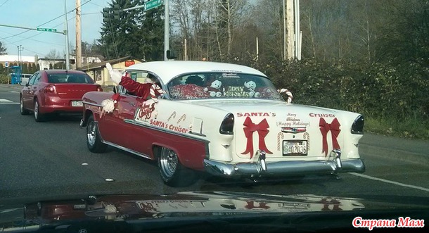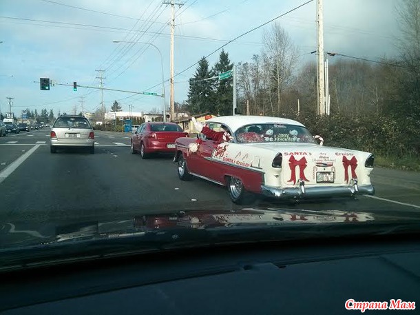 Кстати, когда ехали туда еще, встретили на дороге Санту, ехал медленно и махал народу, все ему сигналили