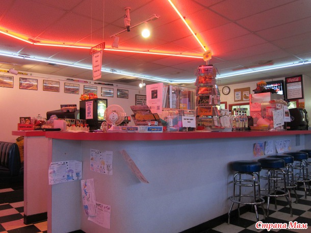 Поэтому в 3:30 дня заехали там в совершенно американское кафе с совершенно американским меню и порциями