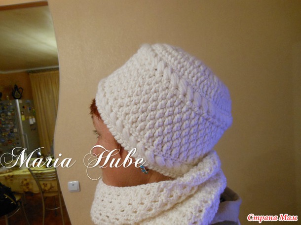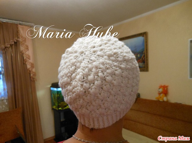 Марина, спасибо большое за подробное описание вашей красивенной шапочки, вот пыталась себе подобную связать, вязала такого плана первый раз, не судите строго...