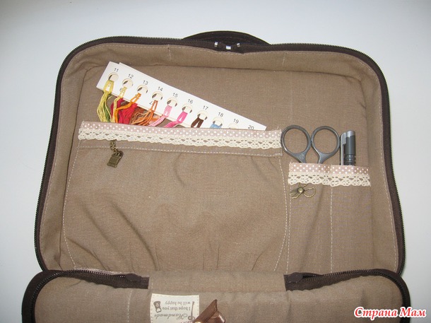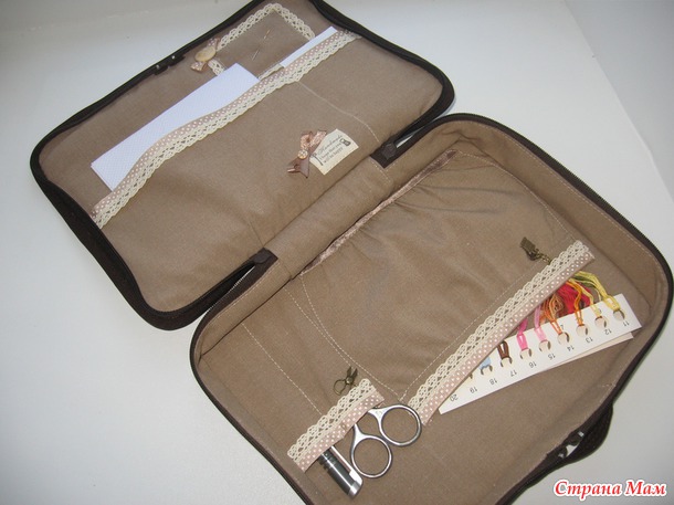 Очень вместительный- и пяльца войдут, и все ниточки сгрузить можно, и шоколадка большая поместится, ибо рукодельница- существо увлекающееся, про еду легко забывающее