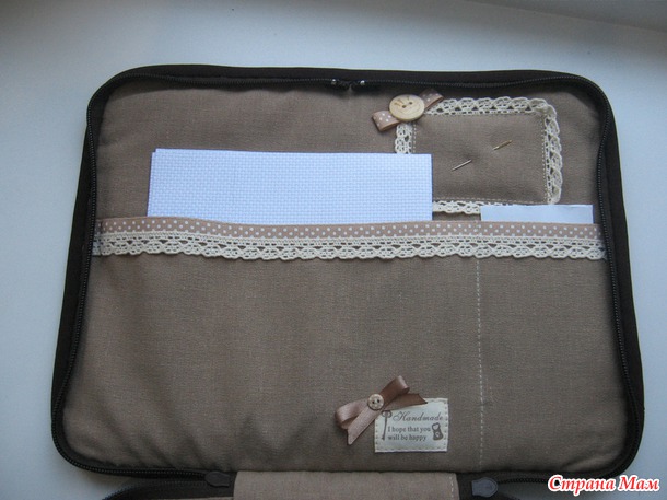 Игольничка, кармашек для канвы и пялец, кармашек, в котором можно разместить бумагу для записи стихийных рукодельных мыслей
