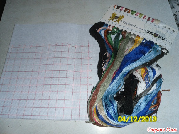 Во всех наборах канва по краю обработана оверлоком и расчерчена квадратиками 10 х 10 крестиков