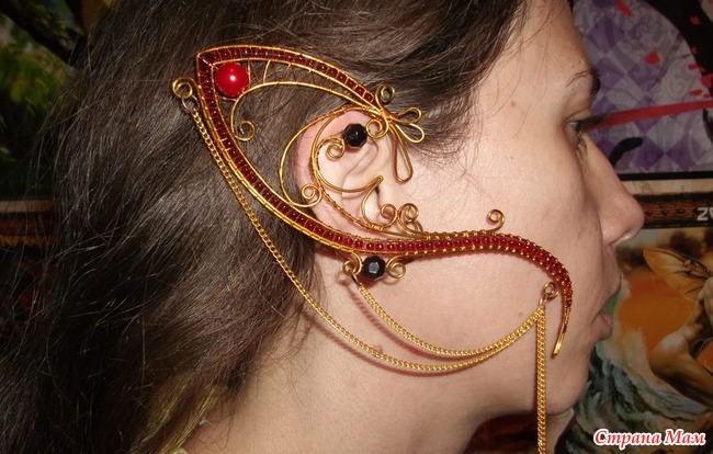 "Огненную Леди" я сплела для Анны. Она выступала на фесте и попросила каффы-ушки в красно-золотом сочетании.