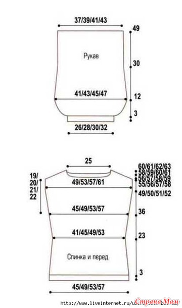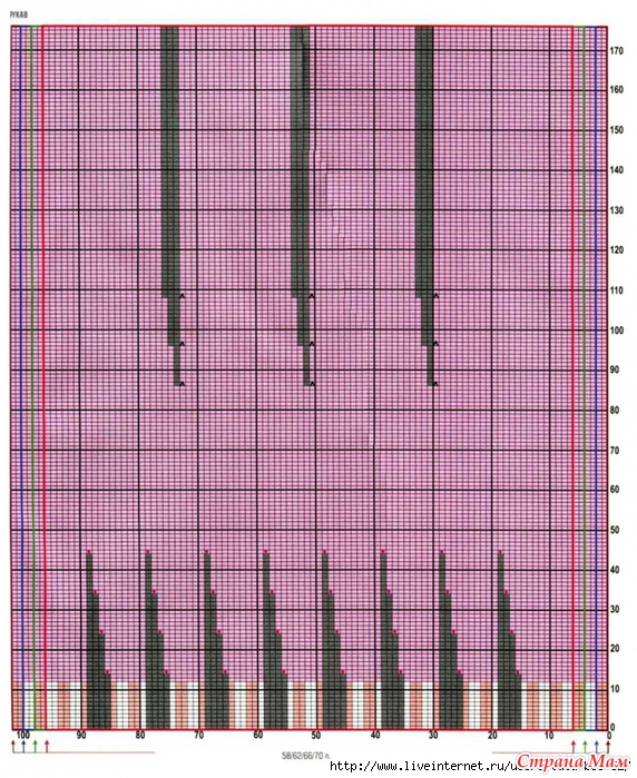 РУКАВ: набрать 58/62/66/70 п., Lady Blatt. вязать по схеме.