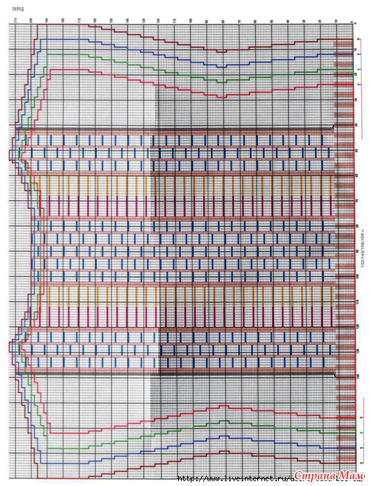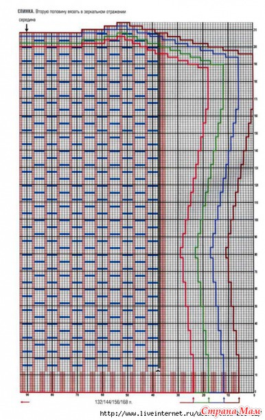 ПЕРЕД: набрать 132/144/156/168 п. Lady Blatt, вязать по схеме.