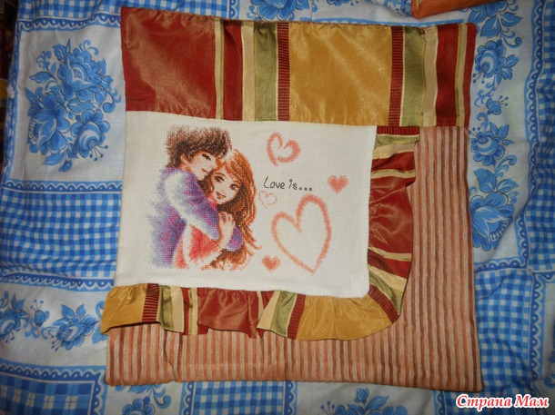 3-4 дня назад закончила вышивать наволочку по набору, заказанному на Алиэкспресс. Сразу не отчиталась потому что пыталась всеми средствами вывести желтые пятна, образовавшиеся, как я поняла, от водорастворимого маркера. Нужно было просто прополоскать получше вышивку, а я, блин, обрадовалась, что маркер так быстро растворился и сразу же повесила сушиться. В общем, полностью вывести пятна мне не удалось(((( Вся канва желтоватая осталась(((