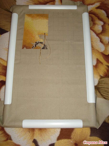 Начала вышивать 24 декабря 2012, было ещё 3 параллельных процесса, так что месяцев за 10 управилась.