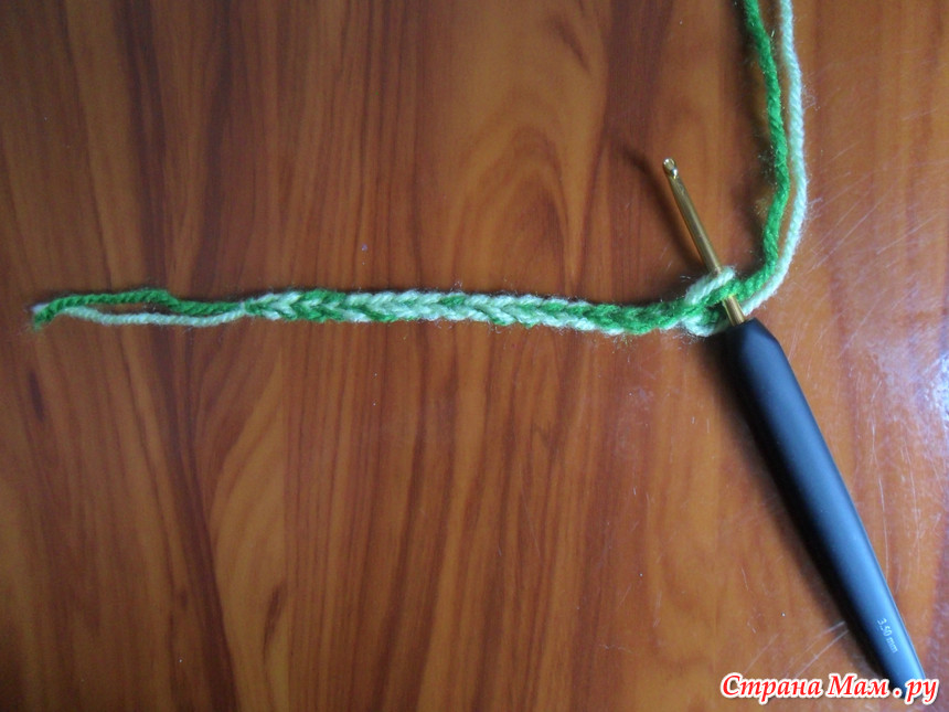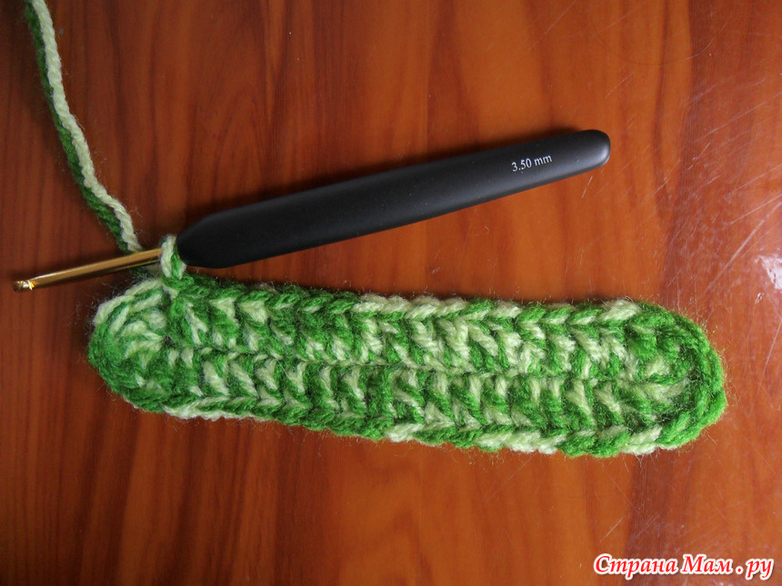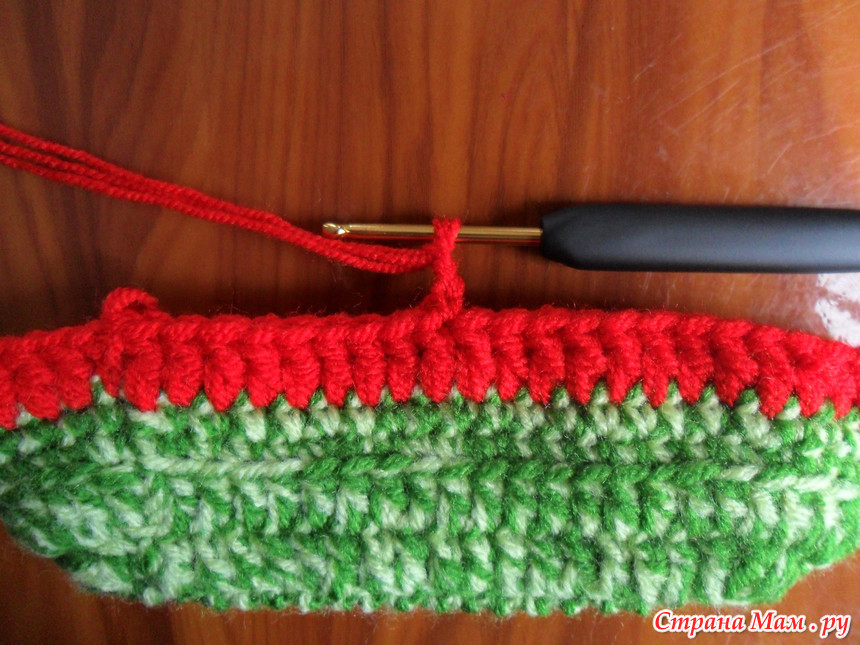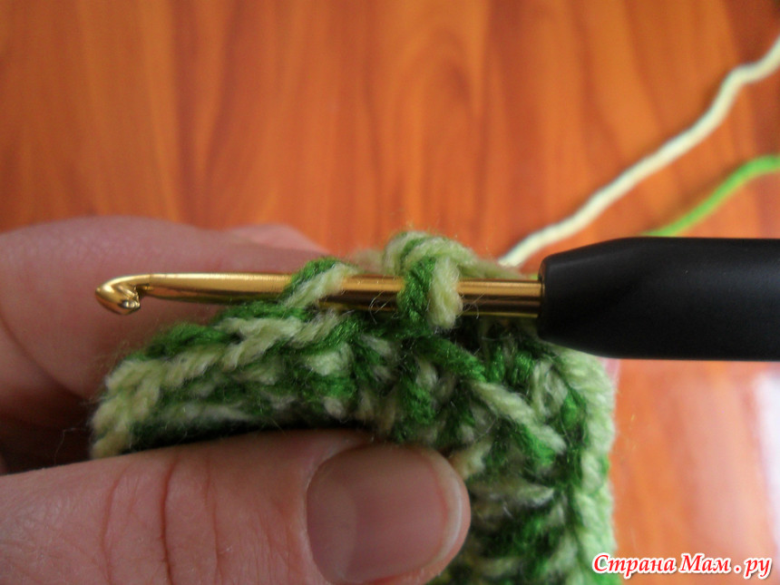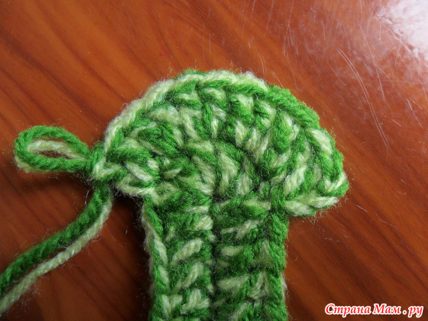 11 ряд: вяжем зелёной нитью столбиками без накида.