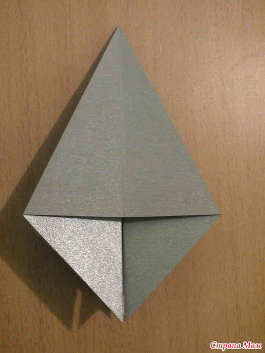 далее загибаем боковинки так, чтобы у нас получился треугольник как на фото