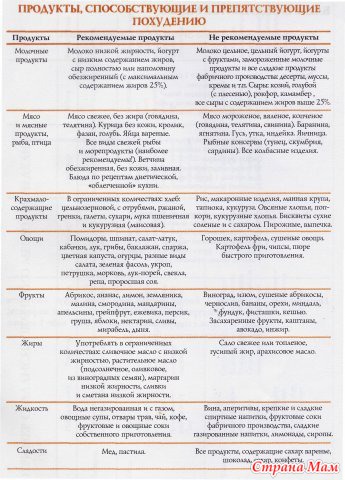 Страна Мам Полезные таблички для похудения