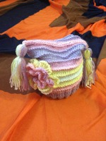 Милая шапочка волшебного цвета для осени и весны выполнена из детского турецкого акрила. Хорошо тянется, но при этом не растягивается! Украшена ажурным цветком со стразой и двумя веселыми кисточками. На фото внучке 1,1 год, но шапочка, которая на ней немного большего размера, на 1,5 см больше в ширину.