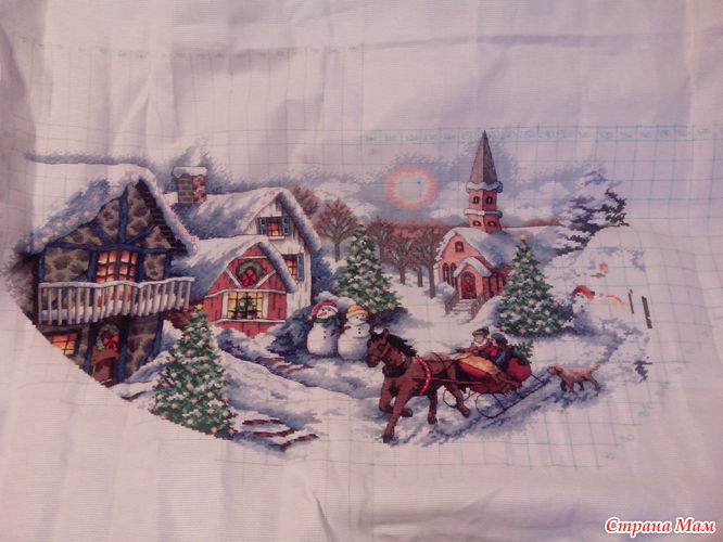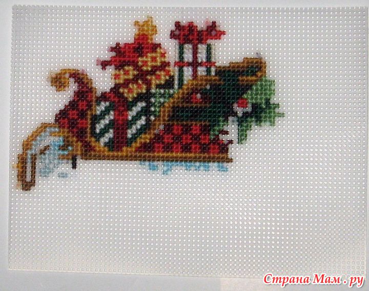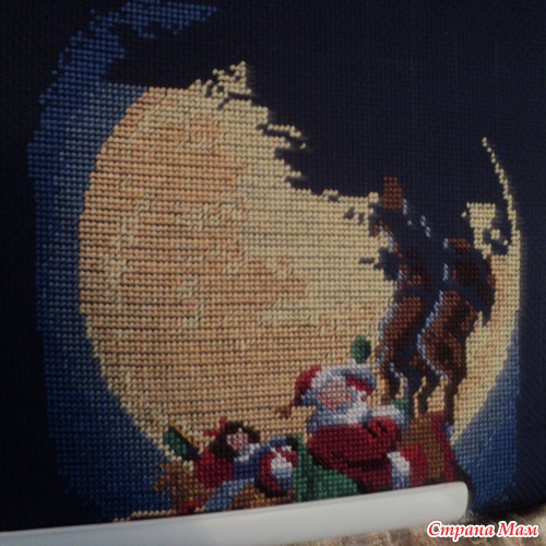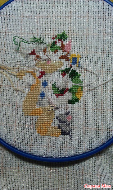 И моё обещанное, вышитое, но не оформленное, а тепперь не только оформленное, но уже и отправленное в новогоднем туре обмена подарками одной из Страномамочек!