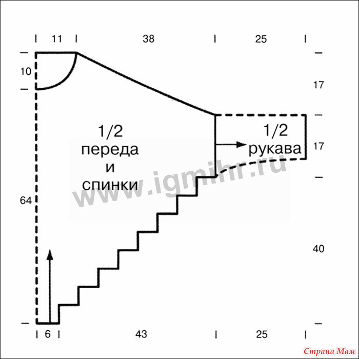 Внимание! Стрелки на выкройке указывают направление вязания.