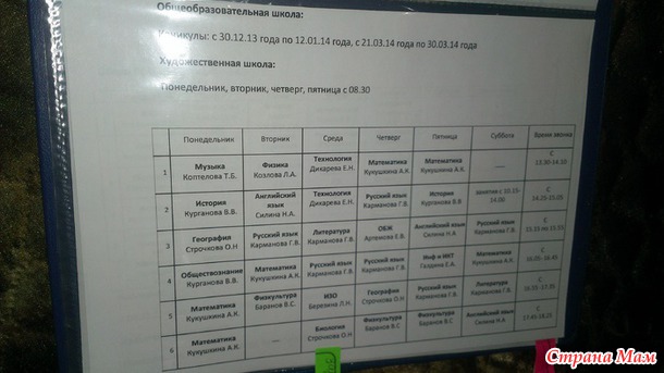 Табличка занятости дочки (расписание и время ее занятий в обеих школах
