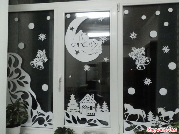 Классные вытынанки вышли на окно. А не могли бы вы шаблонами поделиться? Не отаазалась от домика, лошадок и узора изображающего снег. В общем, всю нижнюю часть окна захапать охота! Спасибо