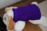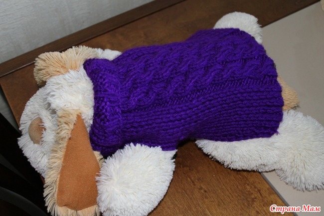 Связано акриловой нитью в 2 сложения. воротник - узором "резинка 2*2". расширение от горловины идет как при вязании реглана (накид до и после регланной линии). на грудке - узор "резинка 1*1". количество кос на спинке варьируется в зависимости от размера свитера и, соответственно, количества петель. по краю свитерок обвязан крючком, столбиками без накида (а можно сделать также резинкой 2*2).