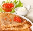 При подаче на стол блинчики свернуть трубочкой, конвертом или треугольником. В качестве начинки можно использовать креветки, рыбу, фрукты, ягоды.