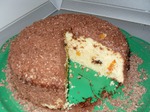 Понадобиться-1яйцо, 1стакан сахара, 1стакан кефира(ряженки), 1 стакан муки, 1 стакан манки, 100гр. слив.масла, на кончике ножа сода.Можно 2-3ст.ложки какао.Курага,чернослив по 2-3шт.