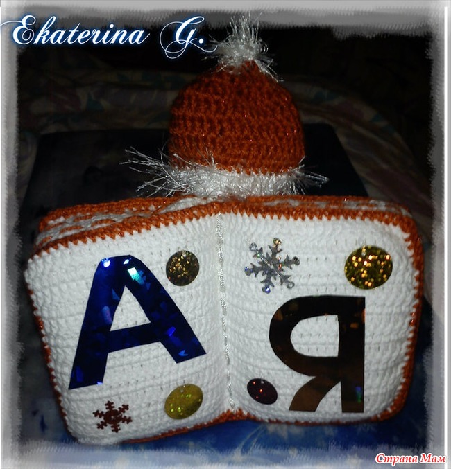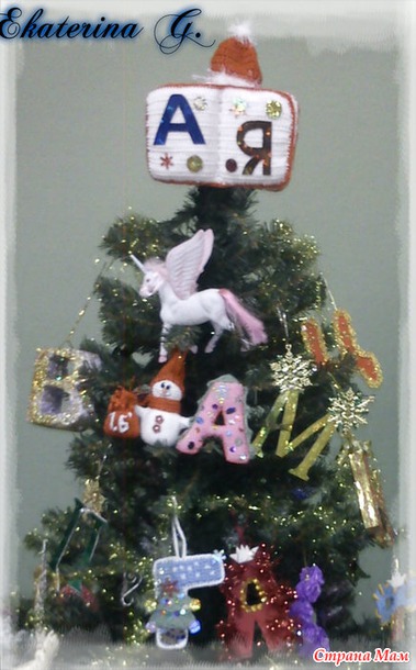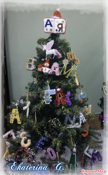 У меня была мысль сделать наверху какую-нибудь красивую снежинку, расшить её пайетками, а в самой "Азбуке" - все 33 буквы разместить, но времени не хватило...