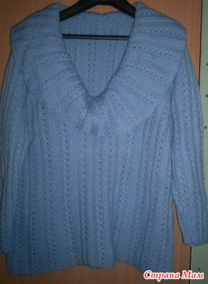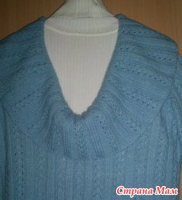 И еще купила троицкую чистую шерсть новозеландскую. Это вообще-слезы. На голубом свитере сделала пышный красивый воротник. Но после стирки пряжа превратилась в валенок, свалялась капитально.