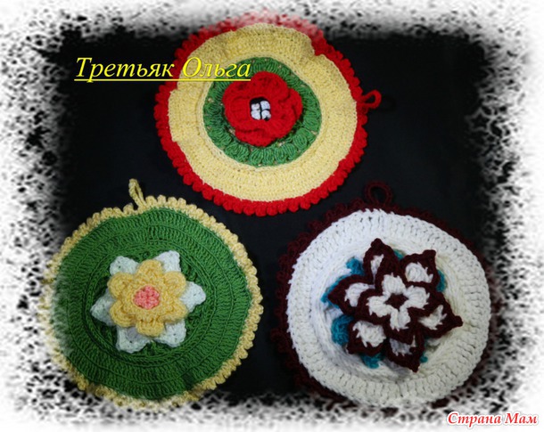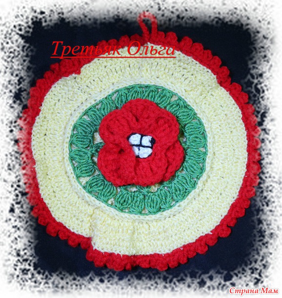 Хочу показать вам прихватки которые вязала еще на восьмое марта. В канун нового года может кому пригодится. Я вязала из остатков. Получилось вот такая красота