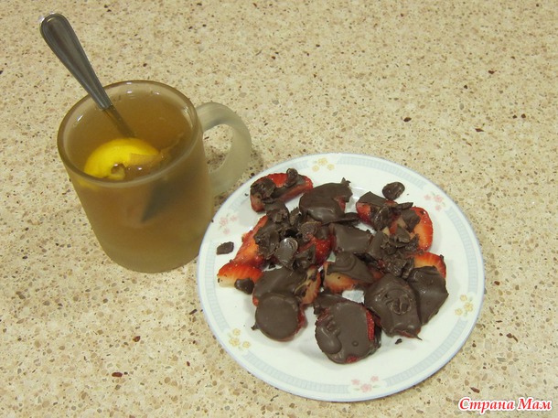 У меня белый чай с ломтиком лимона и вот с клубникой в шоколаде, вкуснотища