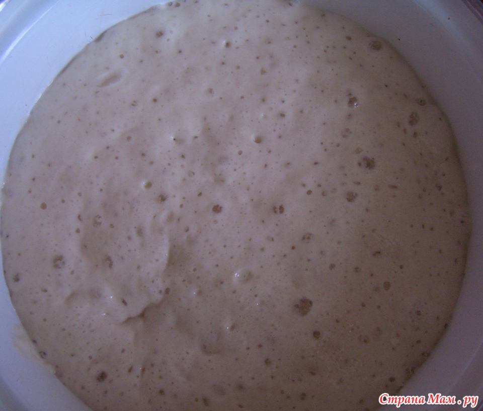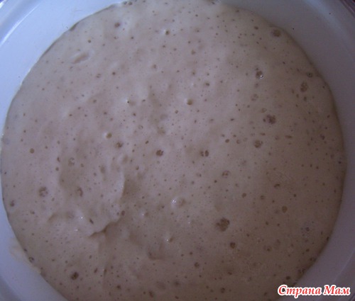 Пока наша опара подходит, растапливаем и охлаждаем сливочное масло, а яичные желтки взбиваем с сахаром. Когда опара "подошла" и имеет такой вид: