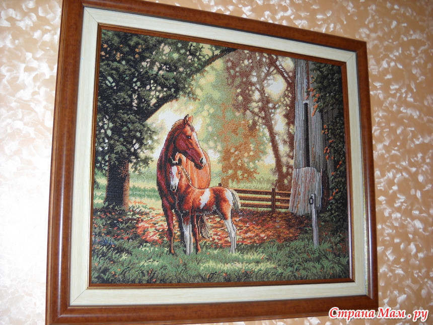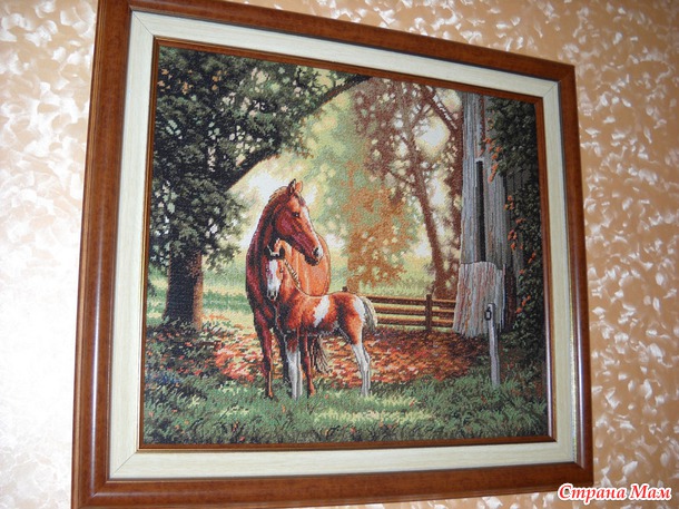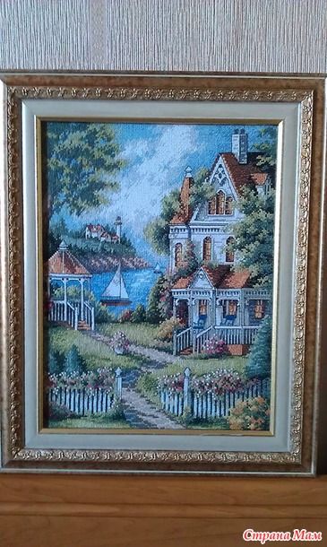 От автора: "Другого фото нет, так как она моя картинка ждет меня в старом доме. Приедет ко мне родимая только в конце января. Вышивка очень даже понравилась, очень яркая"