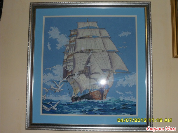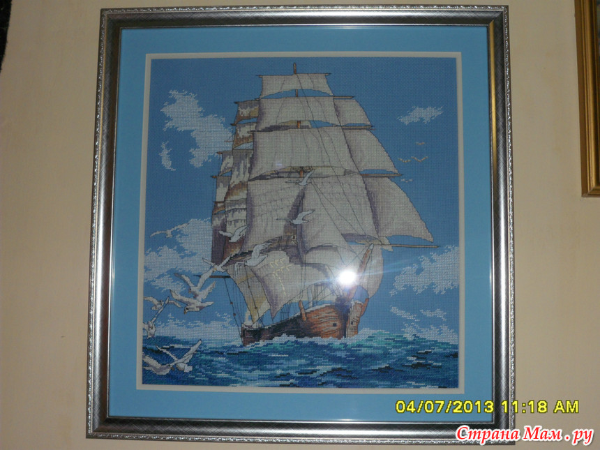 Техники: корабль - крест, море - полукрест, завершающий этап - бэкстич.