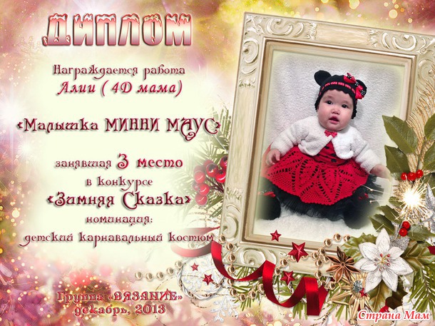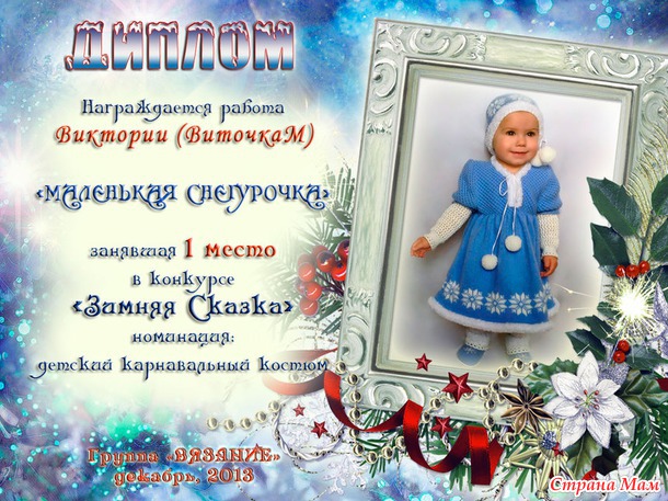 Мы с дочерью заняли первое место!!! Это какое-то Новогоднее чудо и шикарный подарок на день рождения моей «Маленькой Снегурочке»!!! Ей вчера, в день окончания голосования, исполнился один годик!!!