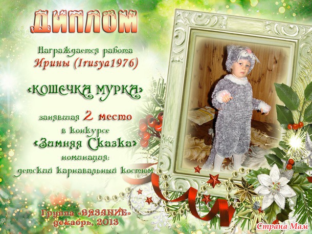 Сижу, пишу, а слезы радости текут из глаз, первый конкурс, да ещё и сразу первое место!!!