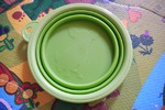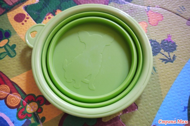 Складная миска, силиконовая. Запаха нет, удобно брать с собой, особенно летом, на прогулки. Заказывала здесь http://www.aliexpress.com/snapshot/292163399.html