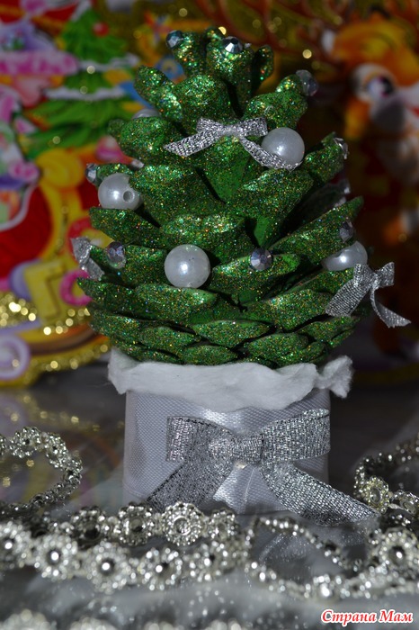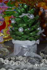 Я сама идейку в инете увидела и решила что это прикольный подарок, тем более что шишки увидела на рынке окрашеные в разные цвета и с блёсками .А стоят всего 5 грн (~25 руб )!!!