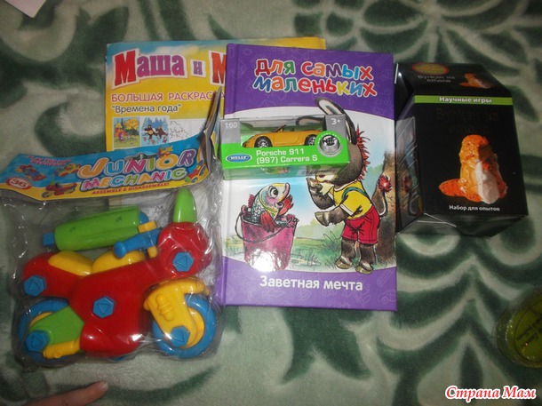 Подарочки для деток. Первым делом смастерили вулкан и разобрали мотоцикл