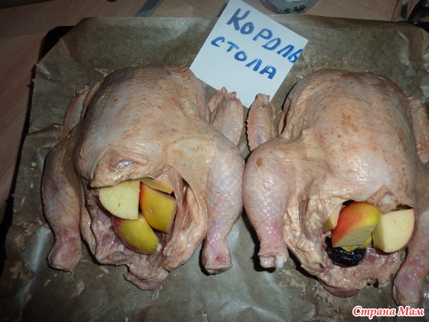 Начинить курицу яблоками и черносливом