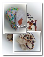 3. Фурлана тоже связана спицами и козырек и ушки отдельно, потом нашила. Крючком № 9 обвязывала края шапочек и ушек.
