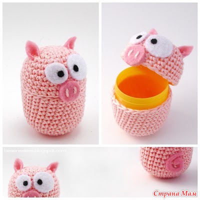 после увиденных в ВК обвязанных крючком стала собирать, праздники - конфеты, яйца и вот уже 4 штуки. можно начинать вязать) с усиками нравятся) вот только где описание найти?(