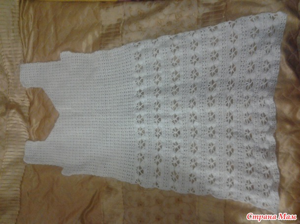 Вот наконец-то я вырвала время. Ко мне крестница приехала - нужно уделить и ей время. Пока муж "режется" с ней в шашки, появилось свободное время. Модератор сказала, что некоторые платья вяжутся - проверила и удостоверилась, что по этому платью были только хвастики, а МК не было. Если ошиблась, и МК был,- прошу прощенья.