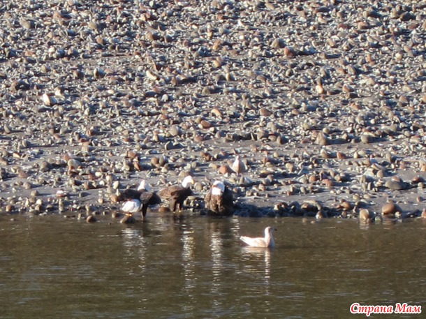 За завтраком нам официантка сказала, что тут рядом есть река, где орлы живут и кормятся. Я поехала ее искать! Нашла быстро и просто. Сделала огромное кол-во фотографий, НО это было достаточно далеко, поэтому не приближая до максимума, ничего не разглядеть на фото в небольшом размере, а если приблизить и фотографировать, то очень мутно получается и опять не понять что там