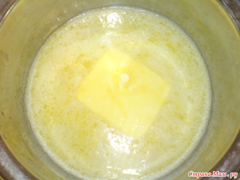 Поставить на огонь 1,5 стак. воды и добавить сливочное масло.